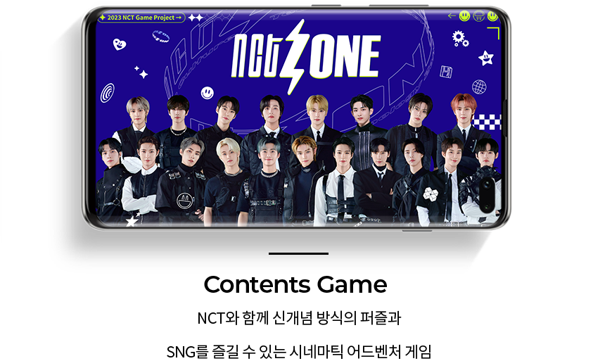 그룹 NCT의 공식 게임 실사로 표현된 NCT 멤버 카드를 활용한 신개념 방식의 퍼즐 및 건물 건설과 자원을 획득하는 SNG 등 다양한 플레이 콘텐츠 제공