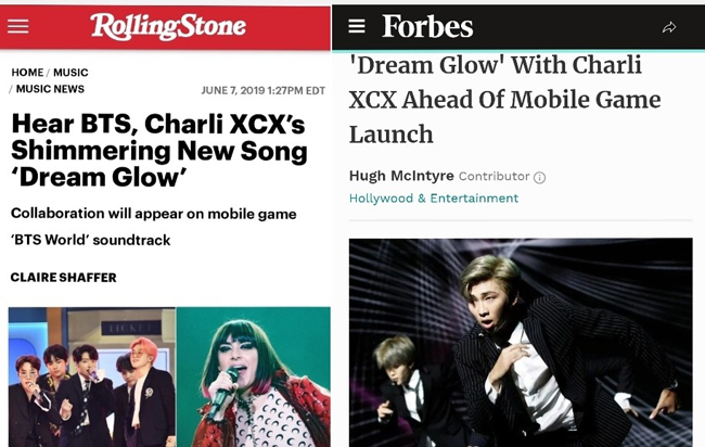 ‘Dream Glow’이 지난 7일 오후 6시 국내외 음원사이트에 공개되자 롤링스톤즈, 포브스등 외신들이 이를 앞 다투어 일제히 보도했다.