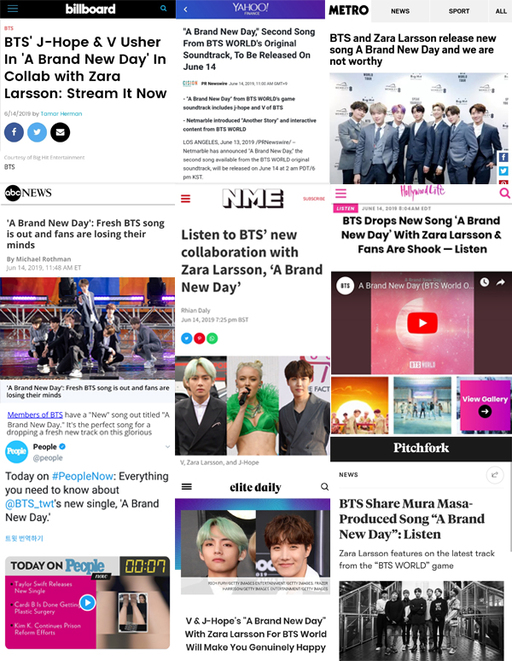 14일 발표된 방탄소년단 뷔와 제이홉의 유닛곡 '브랜 뉴 데이(A Brand New Day)'가 아이튠즈 월드와이드 1위, 유럽 1위에 오르며 세계무대에 화려하게 데뷔했다.