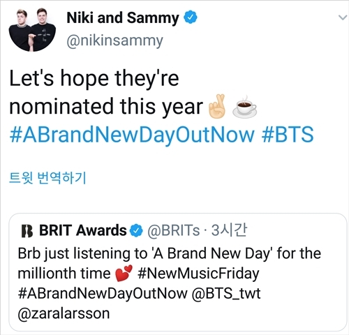 또 영국 최대 라디오 방송국인 BBC R1의 팟캐스트 니키 앨본과 새미 앨본은 브릿 어워드의 포스팅에 "올 해 브릿 어워드에 노미네이트 되길 바란다"는 기대를 덧붙여 팬들의 열화와 같은 성원을 받았다.