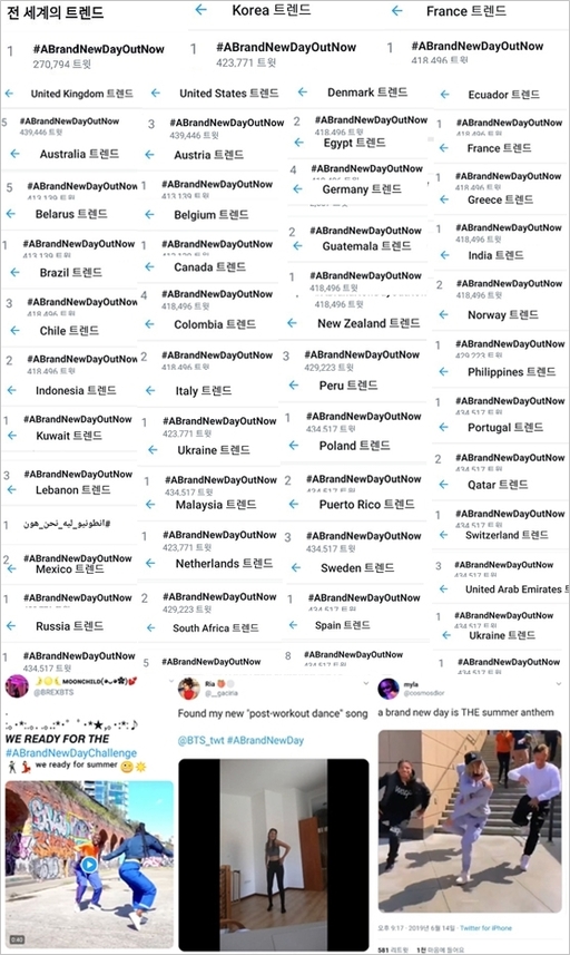 VOPE의 유닛곡 발매 축하해시 태그인#ABrandNewDayOutNow는 단숨에 월드 트렌딩 1위를 차지했다. 이어 #VopeIsDope, #0614Hz_아미의보라빛희망 등의 해시태그도 전 세계 46개국 실트를 점령하며 글로벌 팬들의 관심과 사랑을 증명했다.